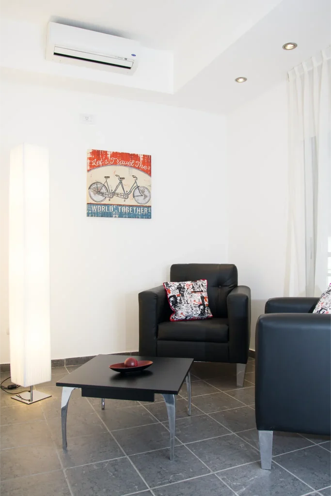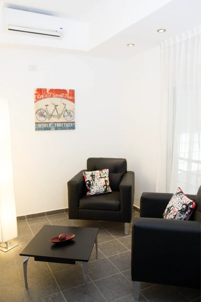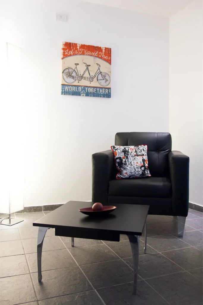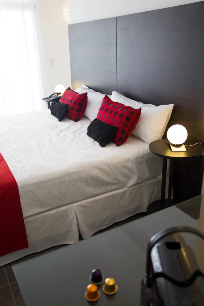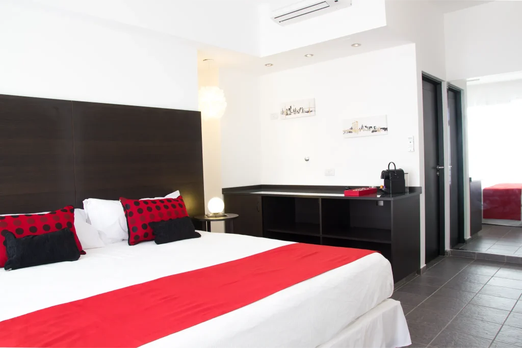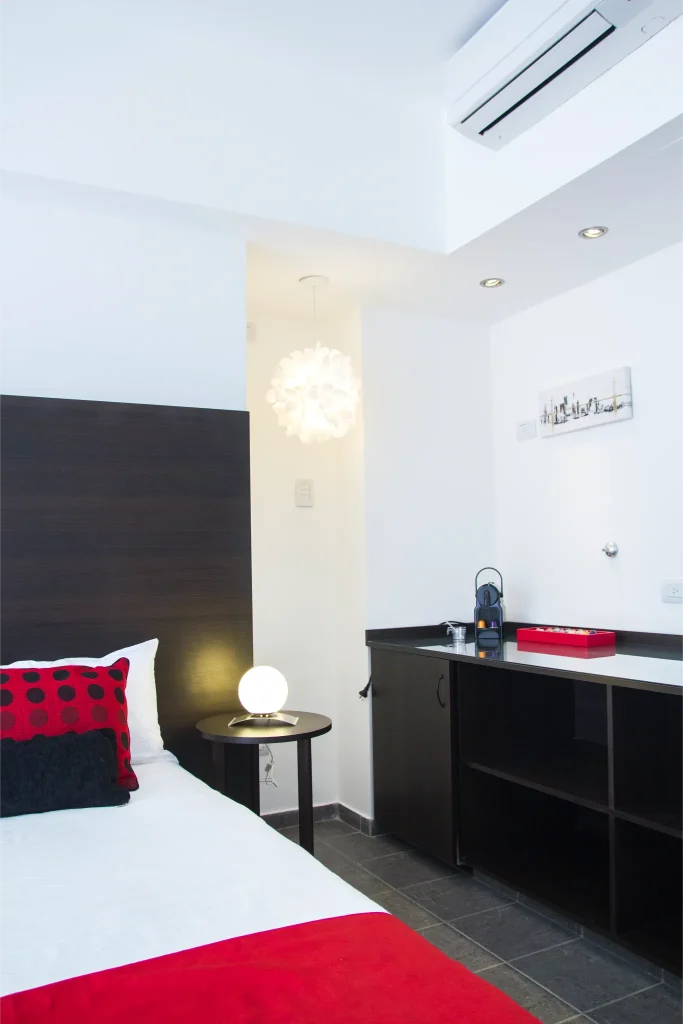 En la ciudad  emblemática de Palermo Hollywood disponemos de 16 suites muy amplias y luminosas (superficie total entre 35 y 50m2 aprox.) Con vista hacia la calle o hacia un pequeño patio interno. El departamento se entrega amueblado. Dispone de una cama King-size, sala de estar y balcón privado con mesa y sillas. Decoradas con muebles de diseño moderno, poseen baño completo con amenities y un pequeño toilette dependiendo de la elección de la habitación. Las suites además cuentan con TV 42”, aires acondicionados, caja fuerte, escritorio, Wi-fi, heladera, y máquina de café, entre otras cosas que se facilitan para hacer uso durante la permanencia. Con posibilidad de adaptar de acuerdo a sus necesidades. ¡Contáctenos!