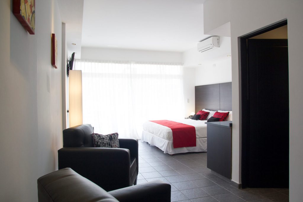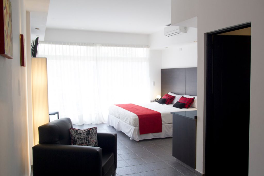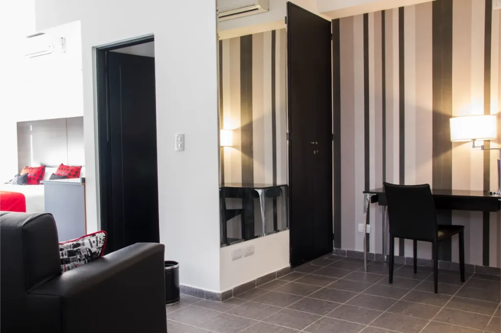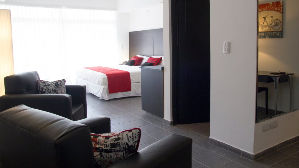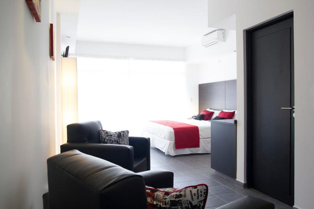 En la ciudad  emblemática de Palermo Hollywood disponemos de 16 suites muy amplias y luminosas (superficie total entre 35 y 50m2 aprox.) Con vista hacia la calle o hacia un pequeño patio interno. El departamento se entrega amueblado. Dispone de una cama King-size, sala de estar y balcón privado con mesa y sillas. Decoradas con muebles de diseño moderno, poseen baño completo con amenities y un pequeño toilette dependiendo de la elección de la habitación. Las suites además cuentan con TV 42”, aires acondicionados, caja fuerte, escritorio, Wi-fi, heladera, y máquina de café, entre otras cosas que se facilitan para hacer uso durante la permanencia. Con posibilidad de adaptar de acuerdo a sus necesidades. ¡Contáctenos!