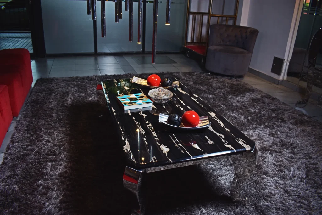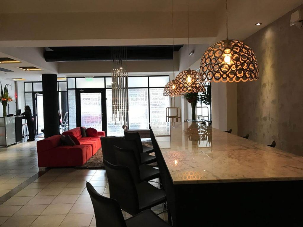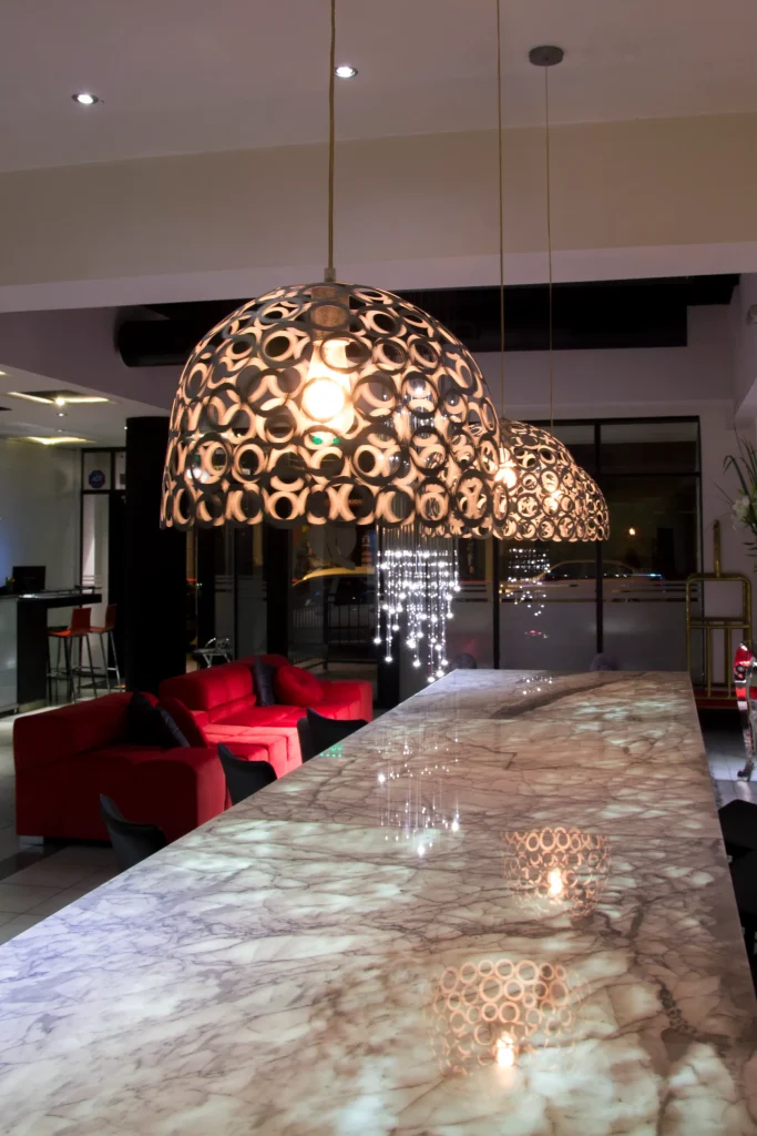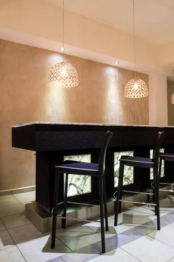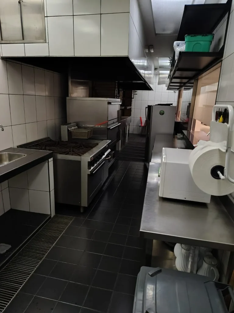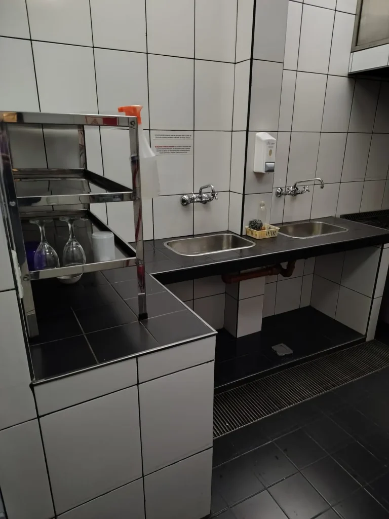 -La cocina se hizo con un diseño multifuncional, parrilla, de amplias dimensiones con desgrasador, cuenta con un potente tiraje, en sí, la cocina posee un baño de uso exclusivo para el personal, o sea que esto resuelve el problema de qué el personal empleado circule por el salón principal (de grandes dimensiones). La cocina, también posee instalaciones todas en acero inoxidable para uso chef premium, con todas las instalaciones correspondientes. Y también la cocina posee una cámara frigorífica de amplias dimensiones.